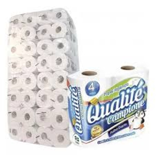 O Papel Higiênico Folha Dupla Qualite, possui maciez incomparável e excelente qualidade. Para cuidar de toda a família, feito cuidadosamente com a dupla seda para garantir higiene. Cuidado para toda família, toque da seda em folhas duplas para sua higiene íntima. 100% fibras celulosas mistas. Conservar em local seco. O Fardo contém 16 pacotes com 4 rolos Rolos cada. Rolo de 10cm altura com 30m de comprimento. Características: - Gramatura (g/m²) - média 28,00 - Resistência Longitudinal (N/m) 140 - 180 - Resistência Transversal (N/m 80 - 100 - Resistência Úmida (N/m) 0 - Alvura Média (%) 77,00 - 85,00 - Matéria-Prima: Fibras Celulósicas