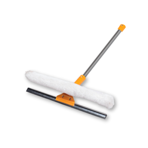 Utilizado em trabalhos onde se necessita agilidade e eficiência. Dispõe de um lavador acoplado a um limpador, economizando o tempo de execução da limpeza. Simplifica o processo de limpeza e proporcionam ganho de tempo nas tarefas. Rodo 40cm x 17cm Cabo 50cm Luva de algodão - Branco Detalhes em amarelo